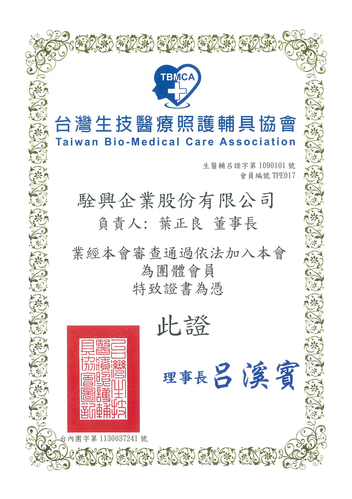 民國114年度開始,駩興企業(股)成為台灣生技醫療照護輔具協會(TBMCA)之正式會員。